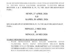 PENGUMUMAN PERKULIAHAN & KRS SEMESTER GENAP TA. 2025/2026