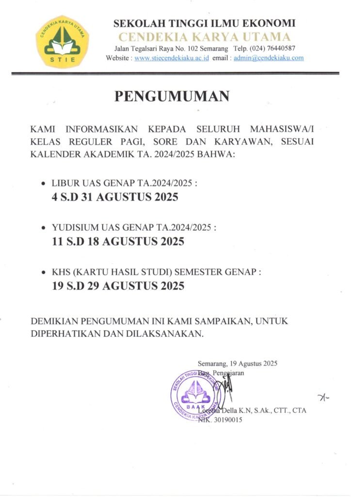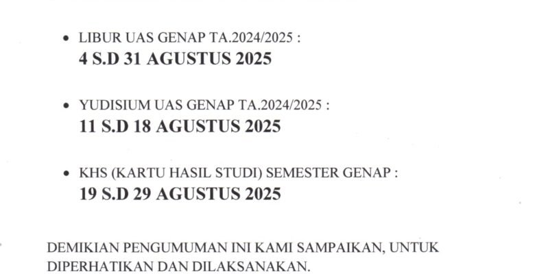 PENGUMUMAN LIBUR UAS, YUDISIUM, DAN KHS SEMESTER GENAP TA. 2024/2025
